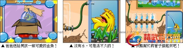 今天是小男孩克里斯的生日,为了庆祝这难得的一天,爸妈送给他一条他最喜欢的金鱼当作礼物,这下子他可乐坏了。但是须要有水的环境才能养活金鱼,让我们一起来帮助克里斯将接水管接起来养金鱼吧!