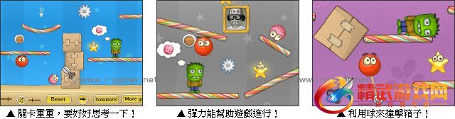 游戏操作:以滑鼠操作游戏,以小剪刀剪断绳索喂饱殭尸。