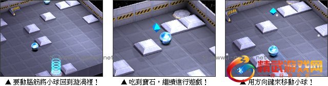 游戏操作:以键盘方向键操作小球移动,收集宝石,到达出口顺利闯关。
