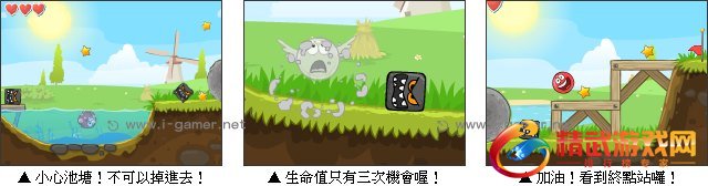 游戏操作:以键盘方向键操作小红球移动与跳跃。