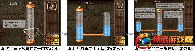 游戏操作:以滑鼠操作进行游戏,点击右方选择水资源,放置在容器的左右两边。