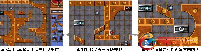 钢珠迷宫是一款益智游戏,在游戏开始前必须先动动脑想清楚路线的规划,使小钢珠顺利抵达终点。游戏里有些小道具可以改变方向,也可以随时启用暂停更改路线,同时也要注意时间的限制哦!
