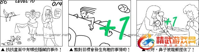 整人漫画里每幅漫画都有不合理的地方,你要通过滑鼠来寻找并且点击整蛊其他人物,到底会出现甚么意想不到或好笑的桥段呢?让我们一起来完成每幅漫画的整人任务吧!