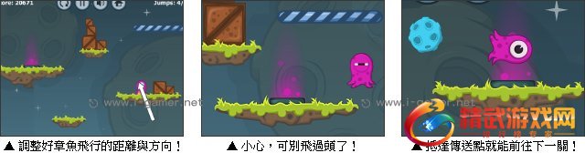 游戏操作:以滑鼠调整外星章鱼发射的方向与角度。