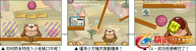 谁偷了我的糖果?爱吃甜食的小老鼠要来吃遍所有糖果啦,快来帮助牠,利用小方块将糖果推到老鼠嘴边就能顺利过关啰。有些地方小方块是不能通行的,得必须巧妙运用场景上道具的辅助才能顺利突破喔。赶紧来挑战,帮小老鼠收集糖果吧!