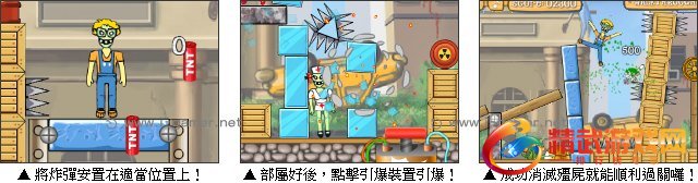 某个小村落殭尸又四处横行了,利用手边的炸弹,借助建筑物和各种陷阱将殭尸消灭掉吧。游戏中要将炸弹安置在适当位置,点击引爆装置成功销毁殭尸就能顺利过关啰,一起来挑战看看吧!