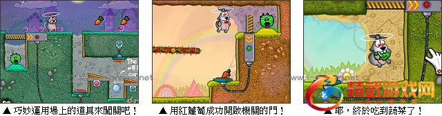 爱吃菜的兔子来啰,运用一对会飞的螺旋桨耳朵,就算追到天崖海角也要把蔬菜全都吃进肚子里,但是蔬菜们被安全的锁在机关里,得有效利用场上的红萝蔔道具来触碰机关才能开启大门。快来帮助小兔子突破所有的关卡,成功吃到蔬菜吧!