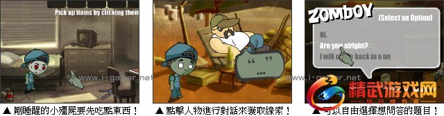 小殭尸醒来的时候发现自己处在一个黑暗的空间,这里充满了腐臭味,他害怕极了,快来帮助他离开这里吧。在出发前得先填饱肚子,收集身边能用的东西喂饱小殭尸,离开货柜车后与人交谈就能获取情报喔。快来与小殭尸一起历险吧!