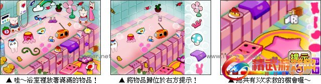 游戏操作:以滑鼠操作进行游戏,寻找浴室中的物品,放到指定的地点。