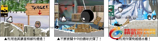 极地雪熊是一款基于物理原理的益智游戏,现在玩家们要担任海象指挥官,把北极熊滑出去并且撞到所有企鹅小兵就可以过关,在路径中要设法放置各种道具来帮助破关,游戏画面下方是道具列有像是跑道还有炸弹等等,要善尽各种道具的特色与功能,相当有挑战性喔!