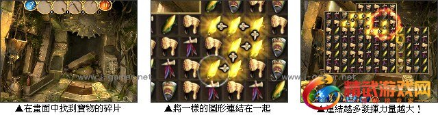 游戏操作:以滑鼠操作进行游戏。第一关必须正确解开后,才可以进入连连看游戏,要先在画面中找到4样宝物的碎片,这些宝物是碎片散落在游戏中的各个角落。