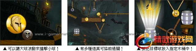 海盗之战是款益智小游戏,透过切断绳子的方式,玩家得想办法让黑色及灰色骷髅小球落入所对应之木桶中。游戏中还须利用手边道具来影响小球的运动方式并改变小球的移动轨迹,藉此来达到每个关卡的指定目标。