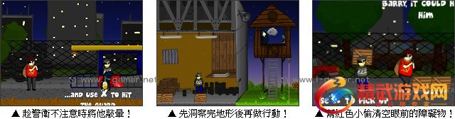 神偷兄弟巴里和拉里精通各式窃盗手法,这回他们又打算干上一票了。游戏中巴里背着很重的钱袋,因此拉里要先前进清空障碍物,等一且都安全了再让巴里通过,沿途要躲过警卫的眼睛并且小心陷阱,做好周密计画后再行动吧!