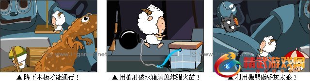 游戏操作:以滑鼠操作进行游戏,看准时机启动画面中各种机关帮助懒羊羊平安回家。