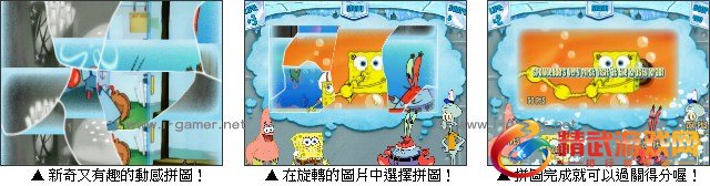 海绵宝宝动感拼图是一款新奇又有趣的拼图游戏,海绵宝宝这次被请去警察局,靠海绵宝宝的记忆帮忙指证并且还原场景。要在旋转的图片中找出正确的拼图,加油喔!