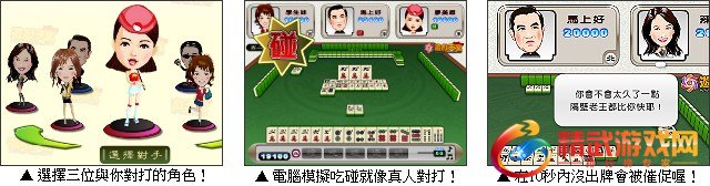 游戏开始时,可先从八位角色中选择与你对打的三位进行。游戏规则与现实生活中的麻将相同,由庄家掷骰,三颗骰子的总和所得的点数就是开牌的基数。胡牌必须凑满五副顺子或刻子及一副将,加起来刚好十七张。花位风字与台数的算法亦比照传统的麻将算法,相信这款游戏是练习麻将技巧与日常休闲的最佳选择!