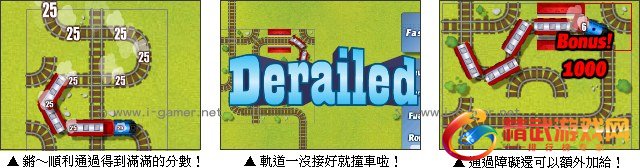 在这个游戏中,玩家必需改变铁轨上各个转向节点的方向,让慢慢出站的火车可以顺利的通过而不出轨,一旦你将所有的方向都调整好了后,就可以让在页面右边按加速键让火车快速通过。游戏中还有路障加分题,若顺利通过得到的分数会比较高喔!