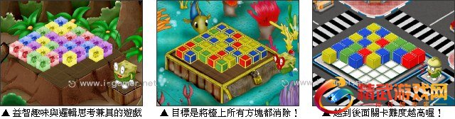 游戏操作:以滑鼠点击相邻的方块,连成一线就可以互相抵消。