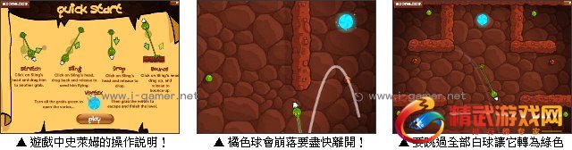 游戏操作:以滑鼠拖曳史莱姆调整前进的角度与力道。