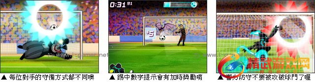 游戏操作:以滑鼠操作进行游戏,攻击时操作踢球方向,防守时阻挡进球。
