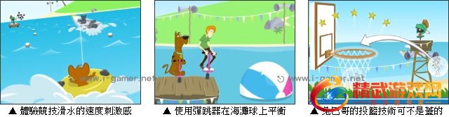 游戏操作:滑水 - 以键盘 ←→ 键操控方向,弹跳器 - 以滑鼠点击释放决定跳跃力道,篮球 - 以滑鼠点击、拖曳拉动弹射路径与力道。