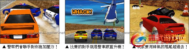 在道路上驾着着车子极速狂飙,是许多男生的梦想!现在此游戏将让玩家在蜿蜒的公路上狂飙,而你的对手是两辆警车跟一台直升机,公路上充满着许多障碍物,考验着驾车技术与胆识,让玩家充分体验到飘移与碰撞的快感,还可以使用氮气加速奔驰,喜欢赛车游戏的玩家不要错过这款游戏。