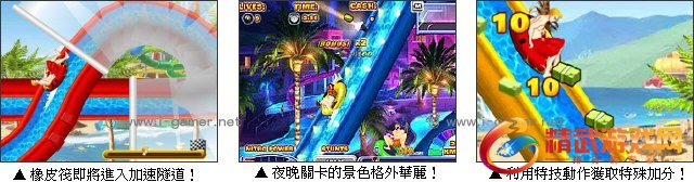 游戏中可以选择白天乐园或是夜晚乐园来进行游戏比赛,给大家带来一种全新的感觉,让玩家可以进行自我挑战,而在比赛过程中使出各种杂耍特技可以获得特殊奖励。炎炎暑假,水上乐园是玩家们必去不可的消暑胜地,快来试试随机多变的复杂滑水道,购买各式各样的泳具,享受这个刺激清凉的游戏吧!
