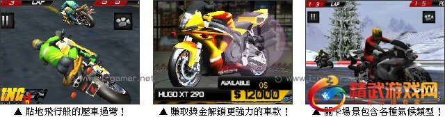 2014 摩托挑战赛是一款移植自手机游戏的作品,以重机为主题的竞速游戏。玩家可以在游戏中体验压车过弯的紧张快感,特效效果十足,一不小心还会失去重心翻车,是款兼具爽快感与真实度的赛车佳作。当玩家赢得锦标赛或是从赛道上取得金钱时,可以购买马力更大、更高级的车款,快来一起体验驰骋在高速赛道上的极限快感吧!
