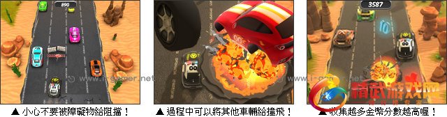 撞撞碰碰车游戏是可以让玩家尽情驾驭汽车在野外的道路上穿梭,并且还可以撞击其他车辆,但沿途中要小心避免撞到障碍物,否则会导致自己翻车就会爆炸重来喔。随着晋级的关卡难度也会不断提升,过程中偶尔也会出现金币及能量,是可以增加生命值或性能,要记得要去吃喔。赶紧来撞飞你的对手赢得最后冠军吧!