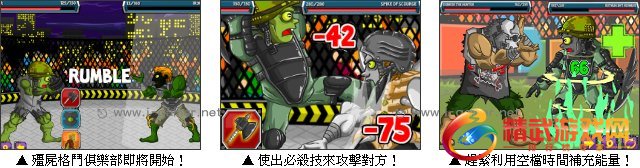 僵尸格斗俱乐部华丽登场啰,这是以僵尸为主题的格斗游戏,一开始先选择角色的装备,可以透过每场决斗的胜利来开启更多装备功能,玩家必须善用各种能力来防御僵尸斗士,并且将敌人给打倒,才能赢的胜利晋级下个关卡喔。喜爱格斗游戏的玩家们可千万不能错过,快来一起体验格斗的快感吧!
