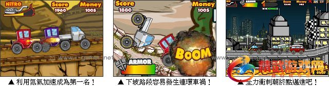 爆炸飞车赛正式开始了,所有的参赛者将在各种险峻的场地中进行比赛,一不小心就会和死神擦身而过,唯有利用先进的车辆和高超的技术才能赢得冠军,快来挑战看看你能不能在这场爆炸飞车赛中存活下来吧!