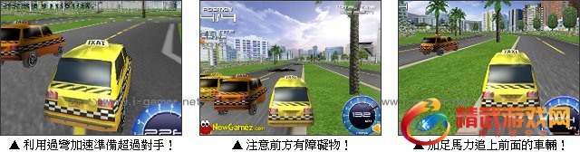 游戏操作:以键盘方向键操作计程车前进方向,Enter 键暂停。提示:赛车卡住时以滑鼠点击游戏画面即可正常游戏。