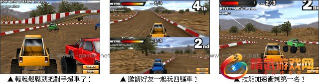 可以邀请好朋友一起玩的双人版 3D 四驱车赛登场。竞速在颠颇的沙场上,考验你精湛的越野技术,操作赛车快速冲到最前线。游戏在操控上有别于以往的赛车,不再只能前进与剎车,行驶在崎岖不平的地形要特别留意,不然一个帅气的过弯可会沦落成难看的翻车,快来挑战看看这款拟真感不错的双人四驱车赛!