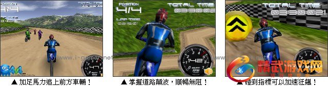 游戏操作:以键盘方向键操作摩托车前进方向。