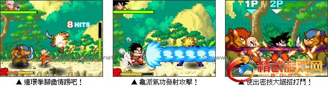 2P:以键盘方向键操作主角移动,数字键1攻击,2跳跃,3集气,456技能。特殊招式:→→/←←冲刺,↓→ +1气功,→→ +1/←← +1冲刺拳。