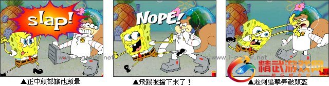 海绵宝宝跟珊迪刚学会空手道,两个人正在切磋技巧,使用滑鼠点击你要攻击的部位,右上方有三个星星的框框,打到珊迪连续三次就会集到三颗星星,珊迪就会开始头晕,你就可以趁剩追击,一直攻击到他醒来为止,看看最后你能成功打赢珊迪吗?