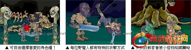 蛮荒地区的野蛮人尚未完全进化,所以平常好勇斗狠,在野蛮剑客对决游戏中你可以选择一个野蛮人来对手进行生死对决,游戏可以双人同时进行,利用必杀技来打败对手吧!