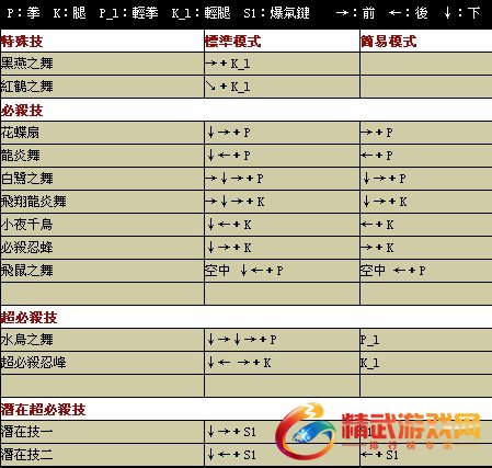 不知火舞招式表: