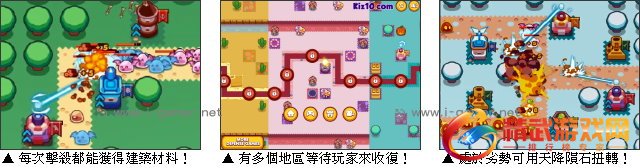 每次击杀这些滑溜溜的怪物,都可以获得建筑材料唷,玩家得要随时留意上方显示的库存数量,因为只要累积定额,就能够在空缺的位置上放置新的砲塔或是升级当前所拥有的啦!但要注意的是,若没有在战役结束后的商店中使用金币升级,该选项可是不会起作用的唷!另外,对于採用「怪海战术」的史莱姆们感到头痛吗?前作中逆天的技能这次当然也不会缺席!只要等待能量蓄满,就可以选择要施放的地点,来场轰轰烈烈的「天降陨石」,造成大範围的强力空袭啦!现在就来试着收复所有沦陷国土,让人民重回安宁的生活吧!