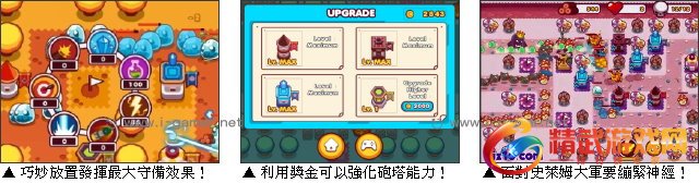 由 Kiz10 所发行的《史莱姆保卫战》推出全新续作喽!除了承袭过往可爱的美术风格,这次还搭配了更多样的地图,更丰富的砲塔以及更多造型的史莱姆怪物,力求抓住第一次接触,以及体验过前作的玩家们的心唷!本款游戏採取传统的塔防进行模式,玩家需要在每个关卡中,发挥你分配资源的能力,在指定的几个地点上,建盖起效能各异的砲塔,以抵御分波来袭的史莱姆怪物!边境能够承受的入侵次数有限,玩家可得小心,别放过太多漏网之鱼喽,一旦让它们碰触堡垒的传送点,可就没有补救的余地了呢!