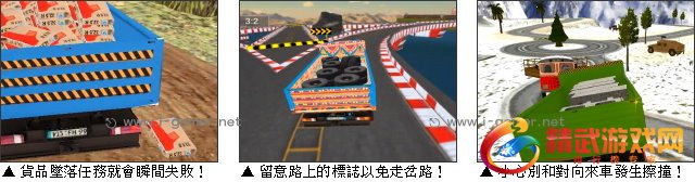 游戏操作:以键盘 WASD 键或方向键驾驶卡车,空白键剎车,C 键改变视角,ESC 键暂停。