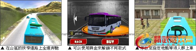而每成功将人群载送至目的地,玩家都能获得不等金额的奖金,并且在商店购买其他款式的公车!随时留意你的油箱,并且在右上角的小地图中确认接送地点或是加油站位置,一旦发现汽油有见底危险,就得入站立即补充,否则耗尽的那刻,任务也会瞬间以失败作结唷!这款游戏没有时间限制,龟速行驶或是快速抵达,对于成功与否并没有影响,所以试着以安全驾驶为优先吧!毕竟你的车上还载着那么大一群乘客呢!对于作为公车司机有幻想或是喜爱驾驶游戏的玩家,可千万不要错过这款精緻的《山路公车司机》喽!