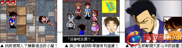 游戏操作:以键盘 ↑↓←→ 键操控柯南移动,Z 键确认 / 对话 / 跳跃。