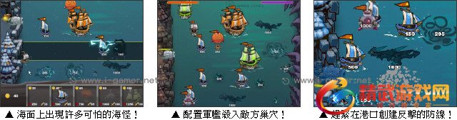 游戏操作:以滑鼠操作进行游戏,点击布置战船位置。拯救水手就能增加金币数量(金币可升级船只);将船舶侧向能增强攻击力;从要塞炮射击船只就会增加。