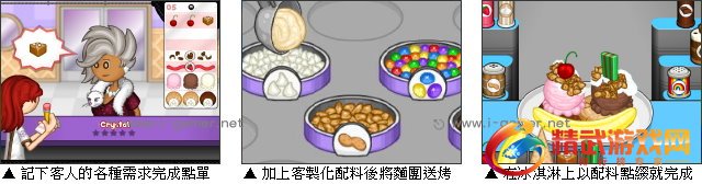 在本次作品中,玩家不仅可以自行设计店员造型,也能够使用获得的道具来装饰店面。而饼乾圣代店经营的方法也很简单,首先,玩家需要先帮顾客点单,接着在后台制作需求的饼乾圣代,店里的饼乾都是现烤的,记得要注意火候噢!饼乾烤成之后再将冰淇淋、配料一一叠加上去就大功告成,可以交单喽!一旦客人确认之后给予高评价,玩家还能获得额外的奖励唷!
