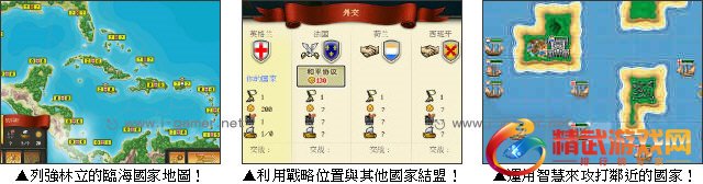 加勒比英雄中文版来啦!这次给你最真实的海战!在游戏中,玩家将化身为欧洲大航海时代的列强国之一,一边发展科技对抗并佔领其他国家成为殖民地;一方面使用外交来联合其他国家打击敌人,为国家争夺最富饶的殖民地。除此之外,还要发展商船展开贸易,并小心海盗的偷袭导致辛苦毁于一旦。步步为营,远交近攻。成为海上霸主吧!