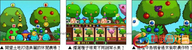 想拥有一座专属于自己的农场吗?在「休闲农场」中就可以满足你的愿望。游戏开始首先将种子播种到土里,然后看着植物,灌木,树木逐渐生长到採收,随着赚取越多金钱与等级提升,可以解锁新的物种与道具,也能聘请动物一同经营,在生长的过程中会有调皮的地鼠与乌鸦过来捣乱,玩家要防止他们偷取水果。想拥有一座农场可是不容易的,玩家快来创造出属于自己的农场故事吧!