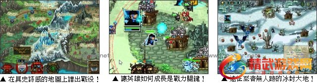 游戏操作:以滑鼠操作圈选单位与指定前往位置,F1/F2 键选择英雄,123键选择魔法,空白键游戏加速,ENTER 键开始迎敌,P 键暂停,ESC 键取消。