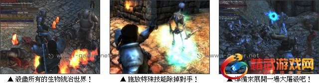 游戏操作:以键盘 W、A、S、D 键操作主角移动,滑鼠左键普通攻击,滑鼠右键重击,数字键 1 施放技能,R 键召唤骷髅战士 (需要尸体),F 键打开召唤功能表,E 键召唤命令功能表。 游戏档案很大 (132 M),载入时请耐心等候!