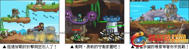在遥远的大陆上,巨人骑士世代守卫着这块土地,国家祥和而安定。突然一天,邪恶的巨石军团闯入这里,想要用自己的野蛮和力量来侵佔一切,战争将一触即发。为了守卫家园,巨人骑士带领军团抵抗敌人的入侵,远古大陆能够恢复到往日的和平吗?游戏中敌人会从画面旁边出现,记得加强以及重点防守,魔法技能的冷却时间不长别忘了要使用唷!